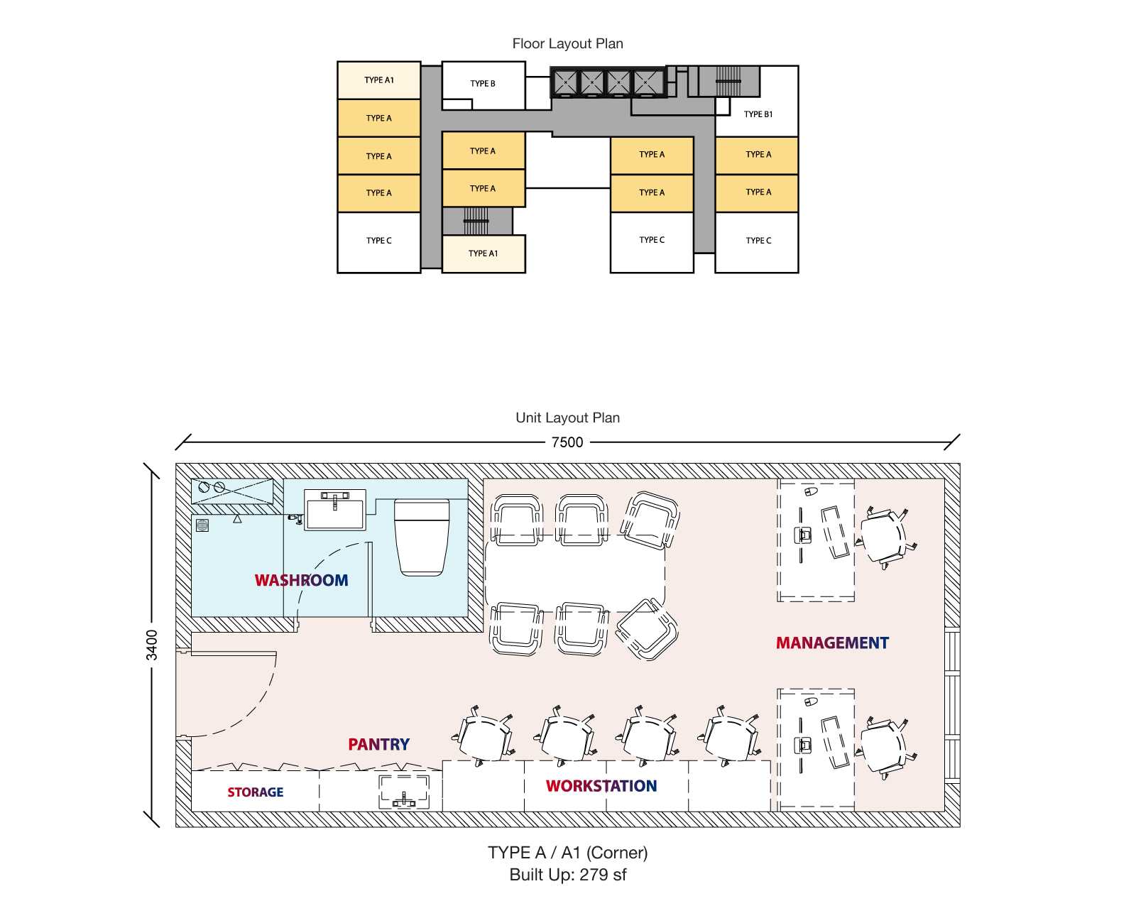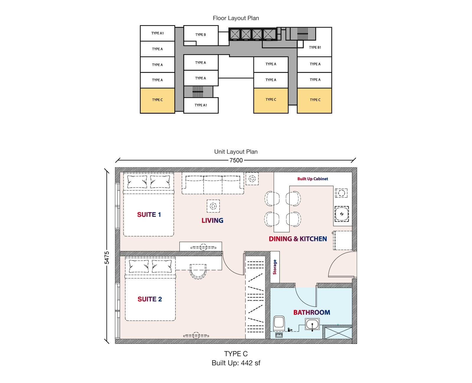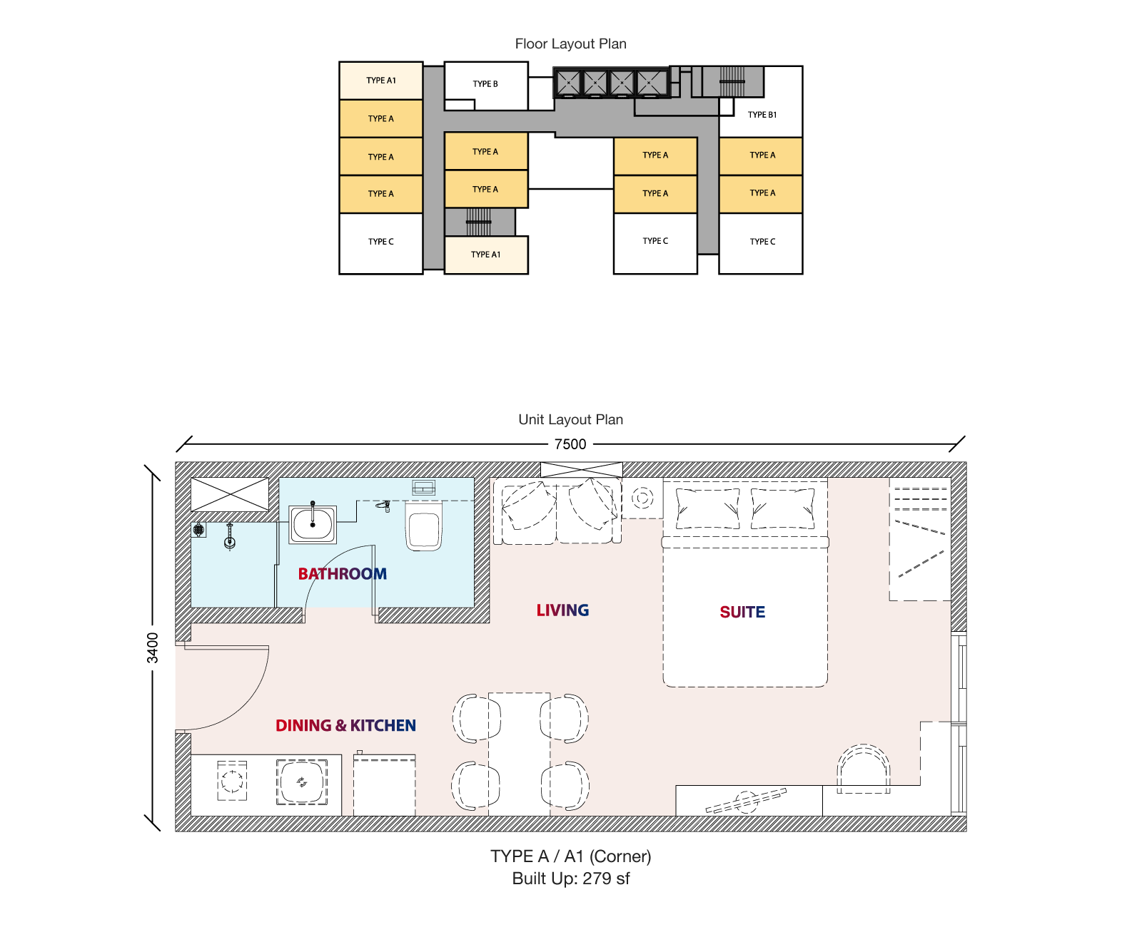 - 1 room suites from 279 to 442 sq. ft.